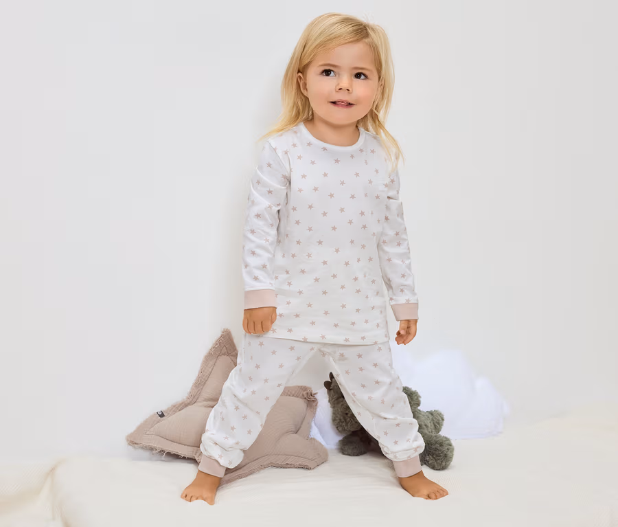 - 1x vrchný diel a nohavice biele s pastelovo ružovou celoplošnou hviezdičkovou potlačou