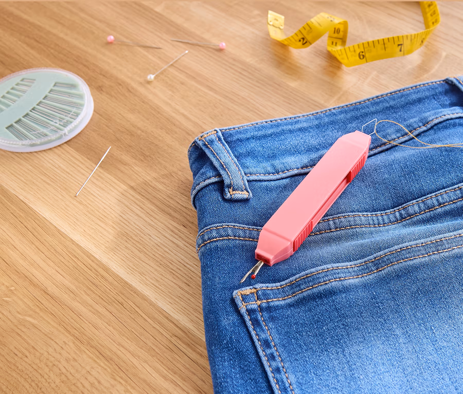 • Kombinácia z navliekačov nití a pomôcky na páranie švov