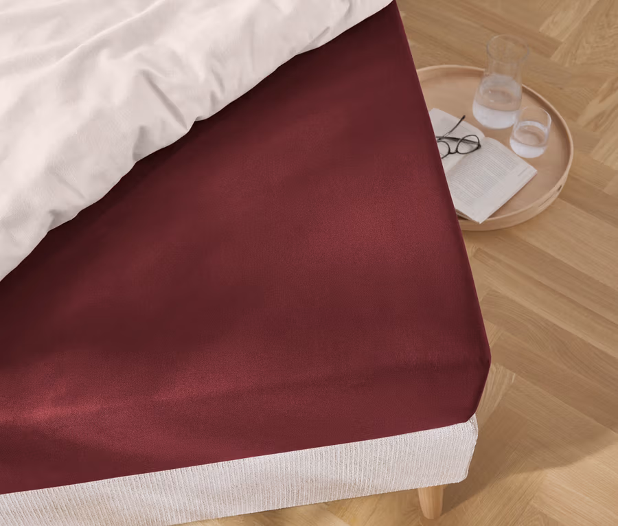 Džersejové napínacia posteľná plachta, bordovočervená, štandardná veľkosť