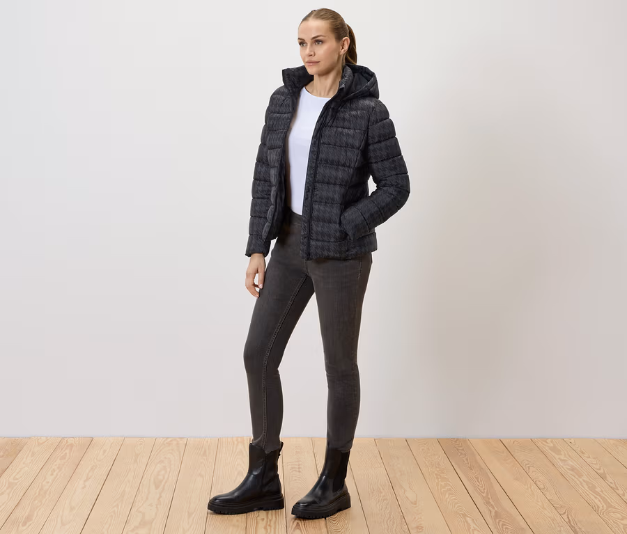 Prešívaná bunda s potlačou s kapucňou