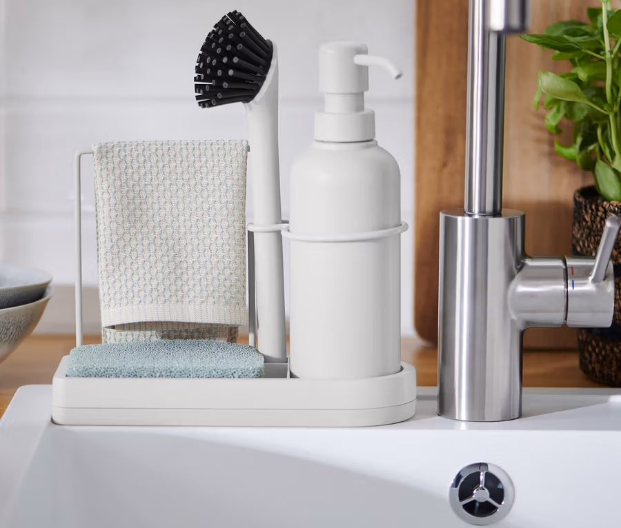 - Štýlová súprava na umývanie riadu pre kefku na riad, dávkovač mydla a čistiacu utierku