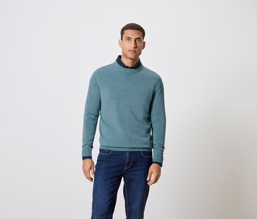 Pulóver z vlny merino, svetlomodrý s melírom