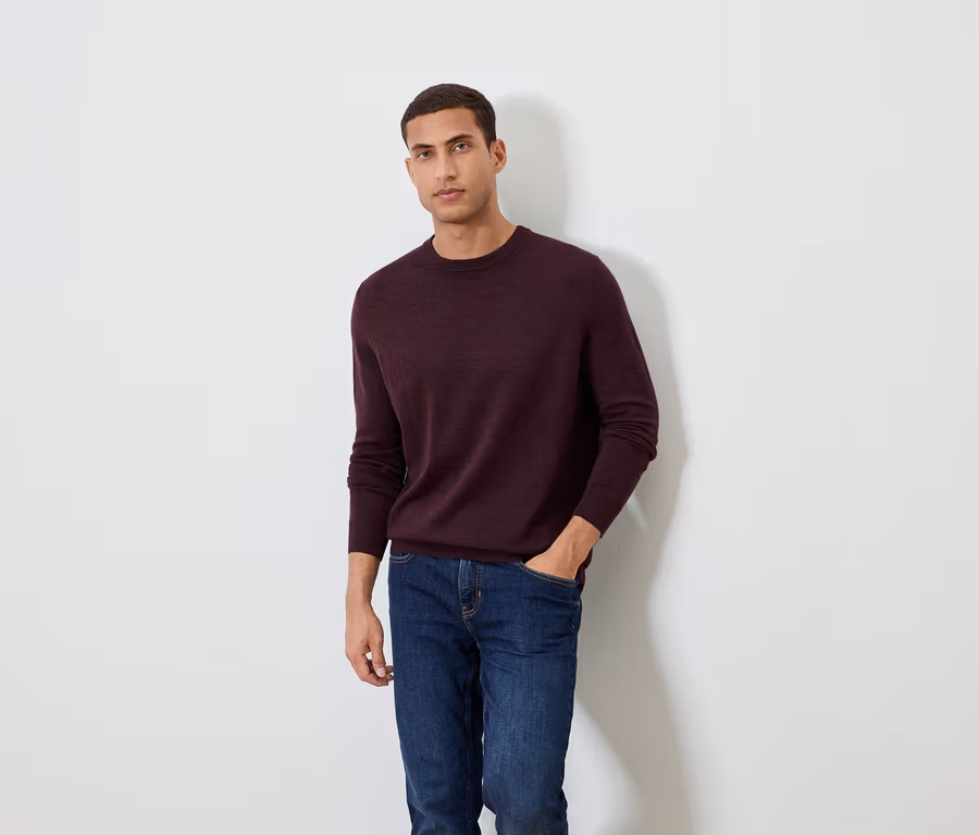Pulóver z vlny merino, tmavočervený s melírom