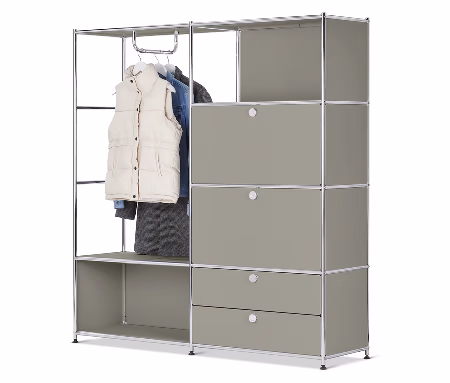 Kovová vešiaková stena »CN3« s 2 výklopnými priečinkami a 2 zásuvkami, svetlosivá