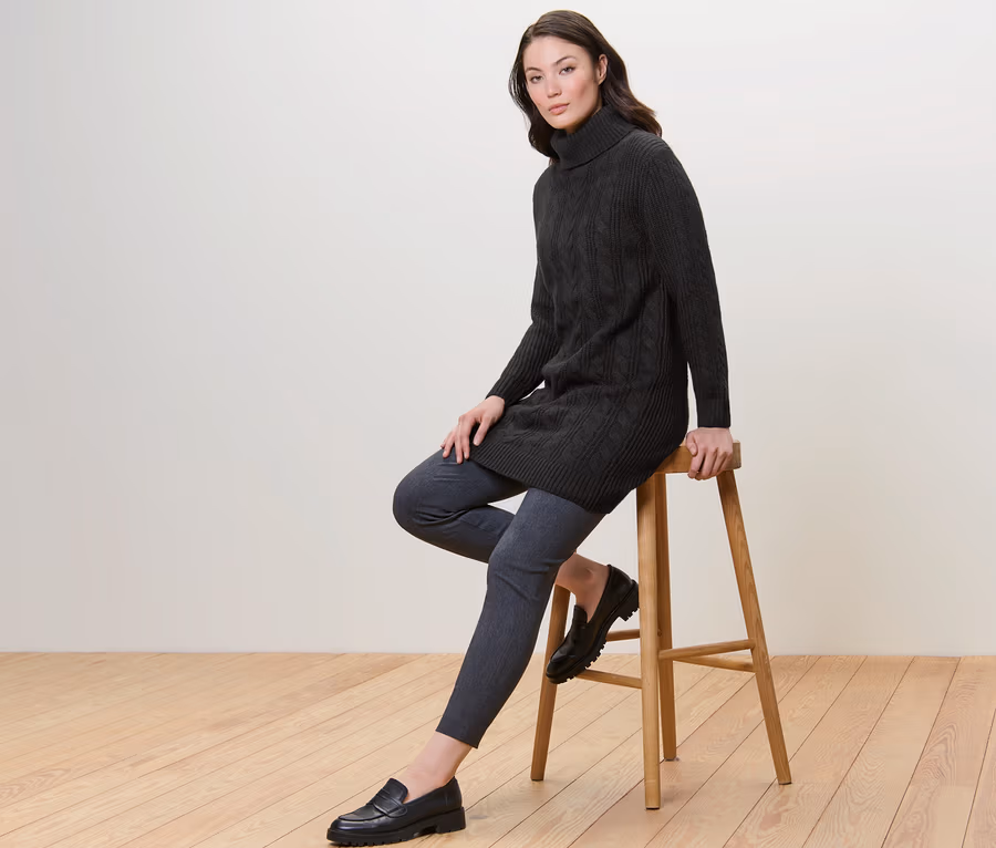 Dlhý pletený pulóver s vrkočovým vzorom, čierny