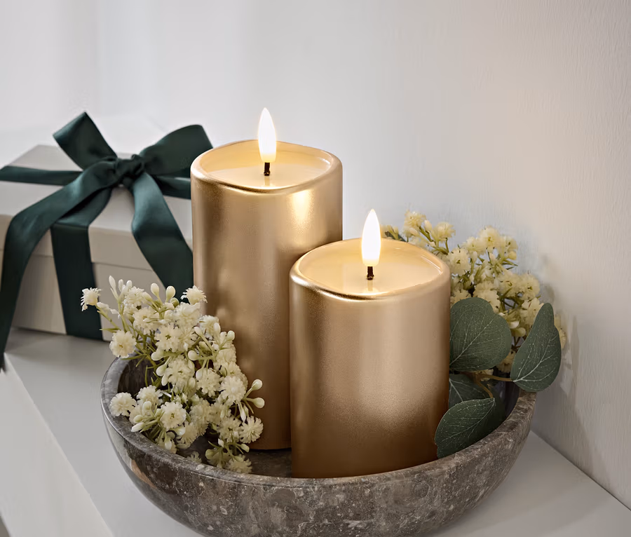 - Na batérie, pomocou realistického LED plameňa s integrovaným efektom mihotania imitujú žiaru sviečok