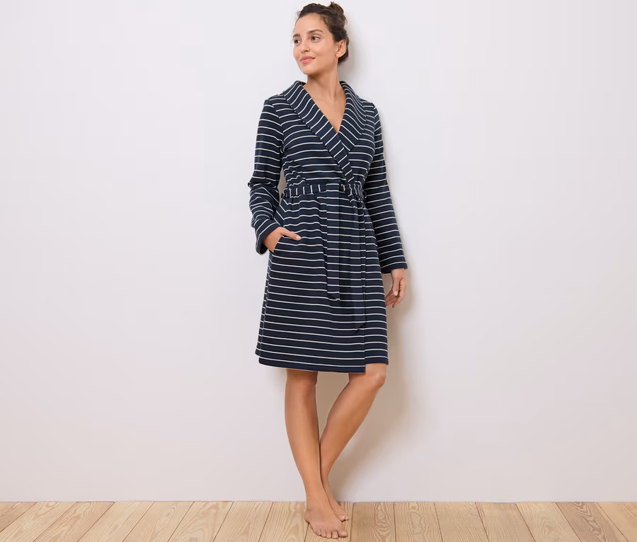- Prúžky v kombinácii tmavomodrej a krémovej