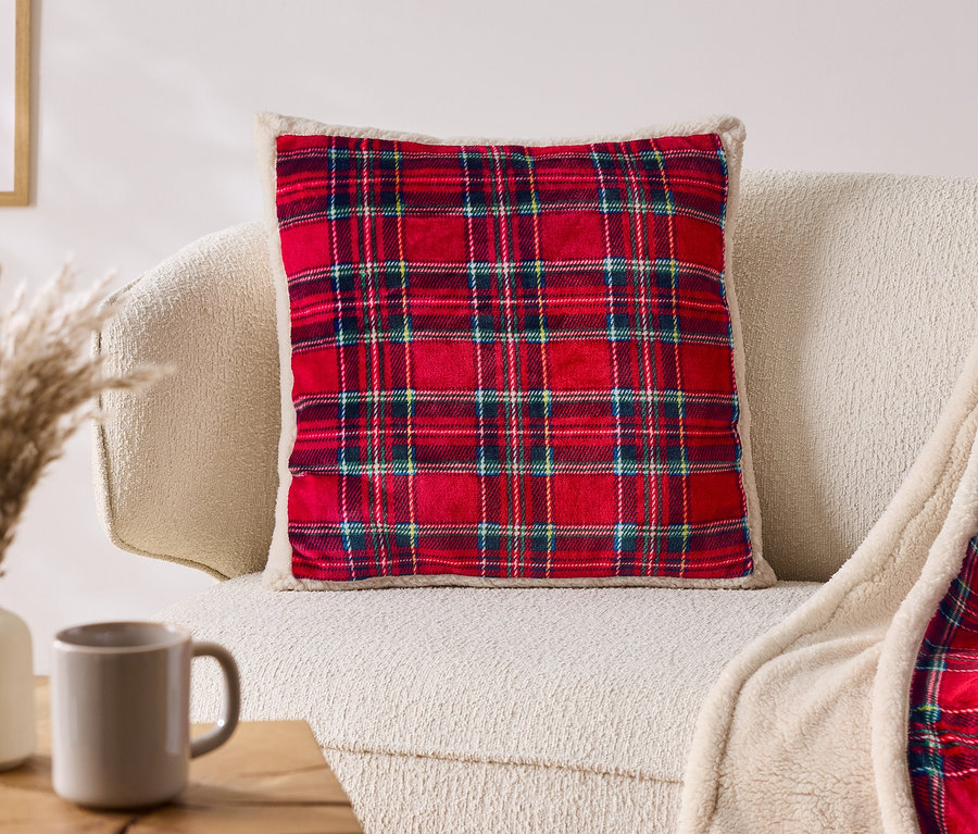 Károvaný plyšový dekoračný vankúšik