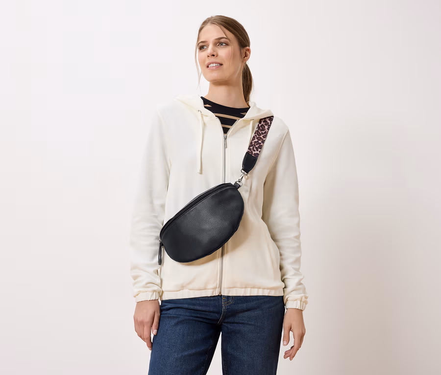 • Popruh na prenášanie s modernou celoplošnou leoparďou potlačou