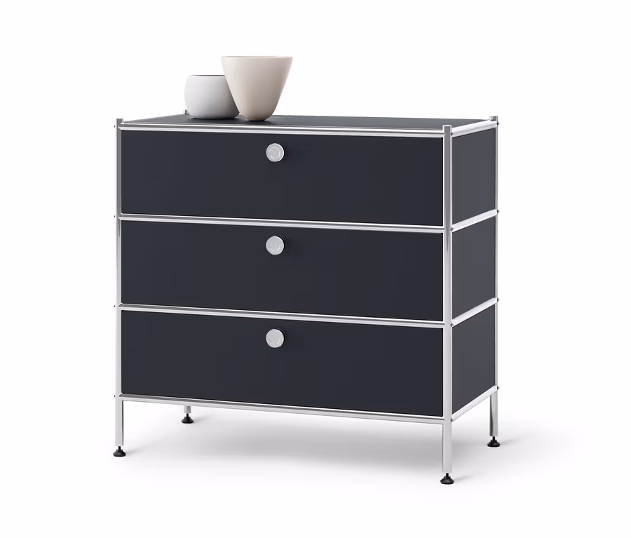 Kovová komoda »CN3« s 3 zásuvkami, čierna
