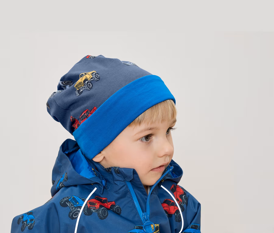 Detská obojstranná čiapka, nákladné autá