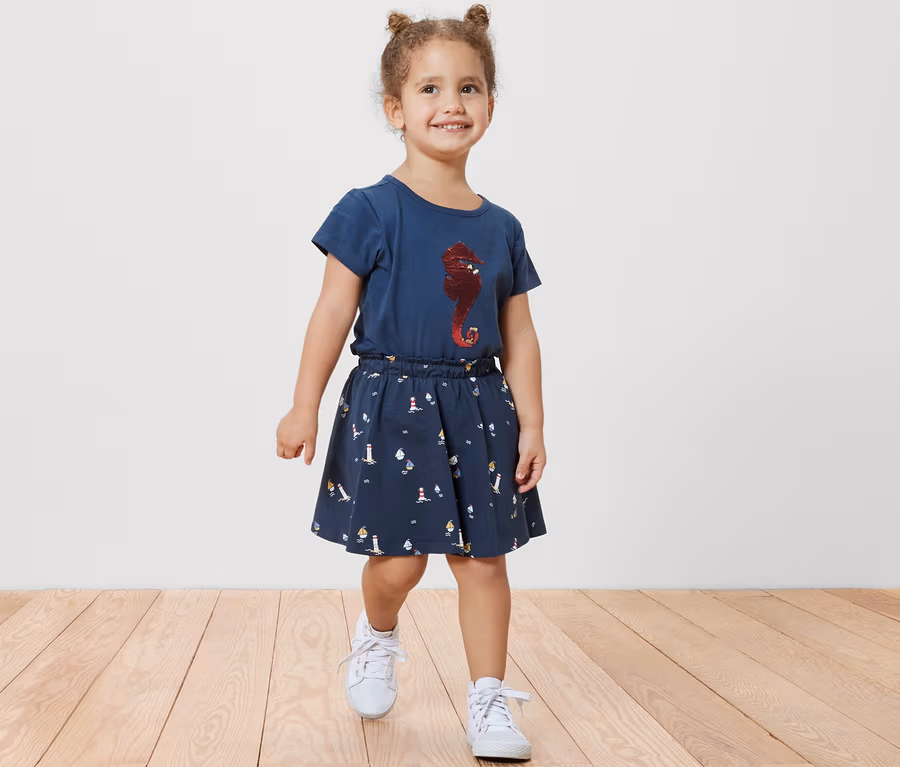 Detská džersejová sukňa s nohavicami, námornícky štýl