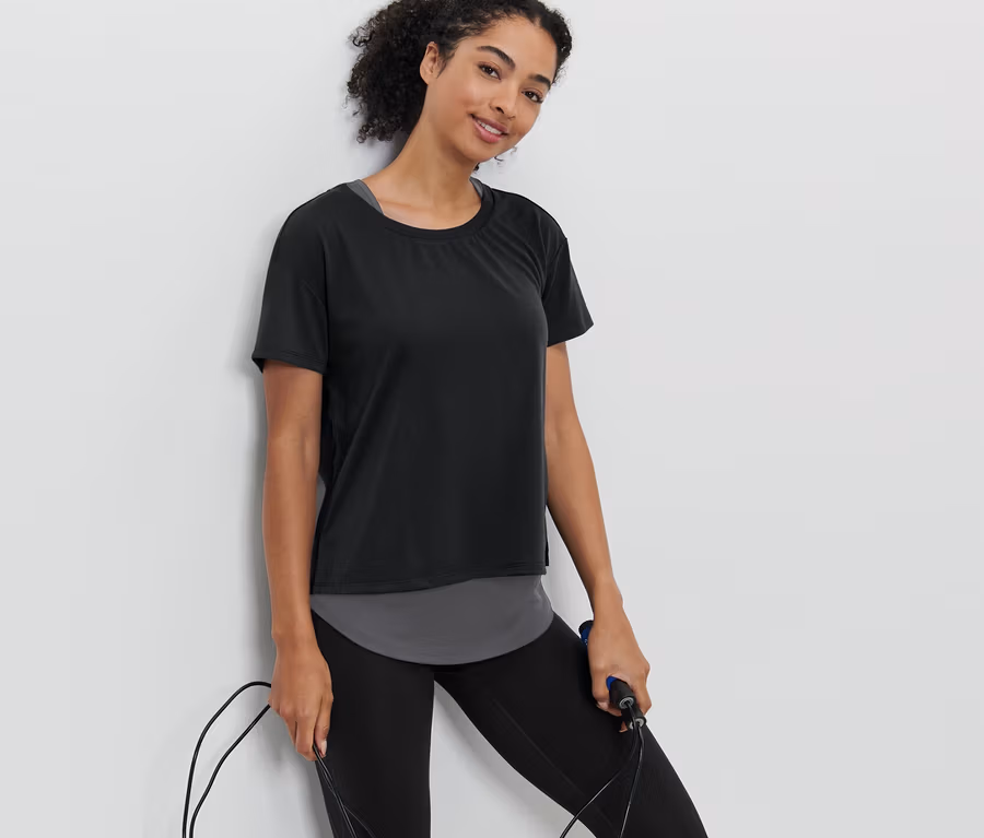 Športové tričko s krátkymi rukávmi 2 v 1, čierne
