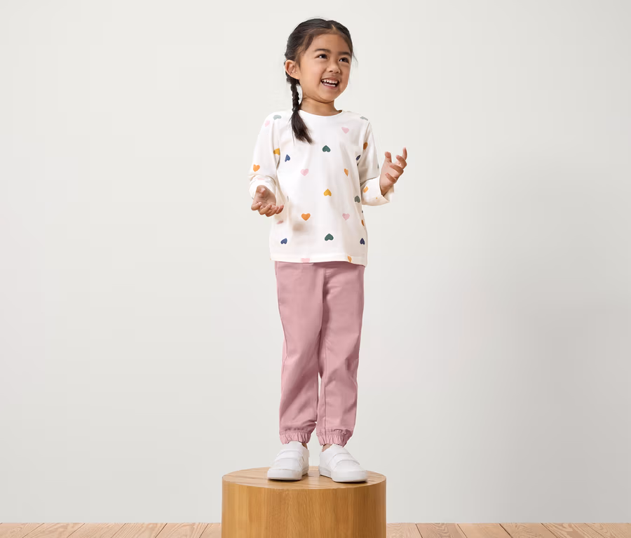Detské naťahovacie nohavice – strih »Ella«, staroružové