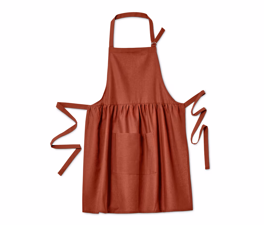 - Kuchynská zástera sa vďaka zaväzovaniu okolo krku s nastaviteľnou dĺžkou dá prispôsobiť každej výške
