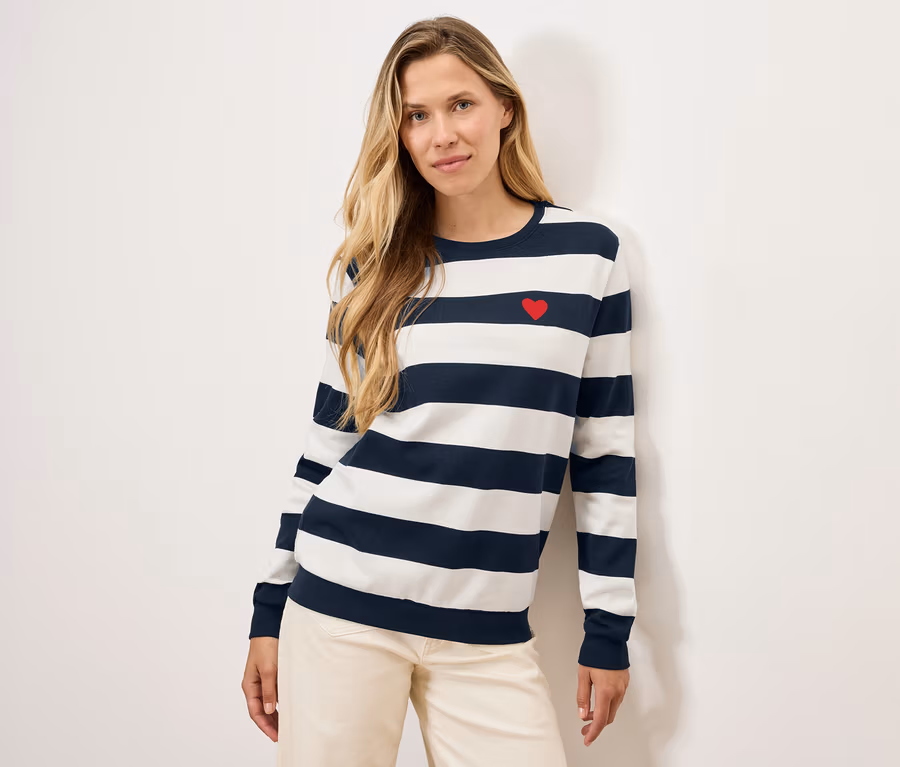 Mikina, prúžkovaná v kombinácii tmavomodrej a bielej
