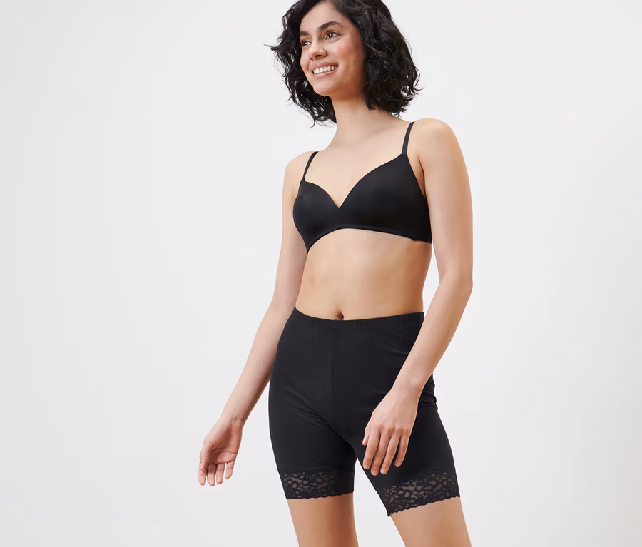 Cyklistické šortky s čipkovým lemom, čierne
