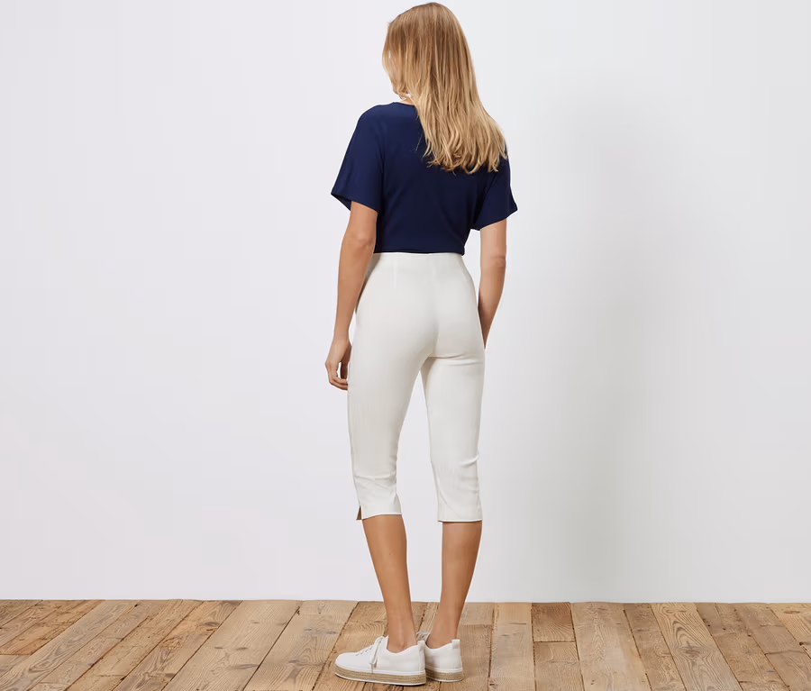 Trojštvrťové elastické nohavice, biele