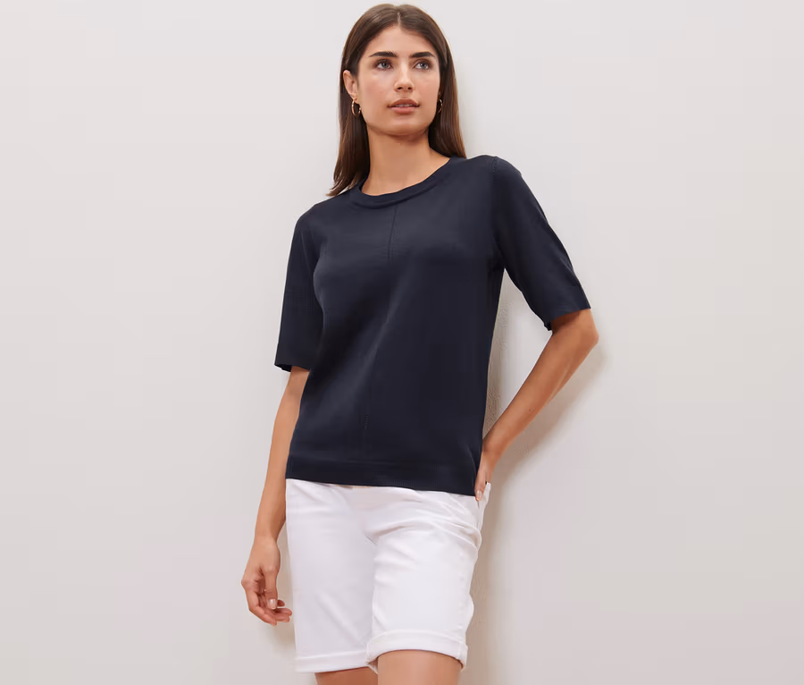 Pulóver z jemného úpletu, námornícka modrá