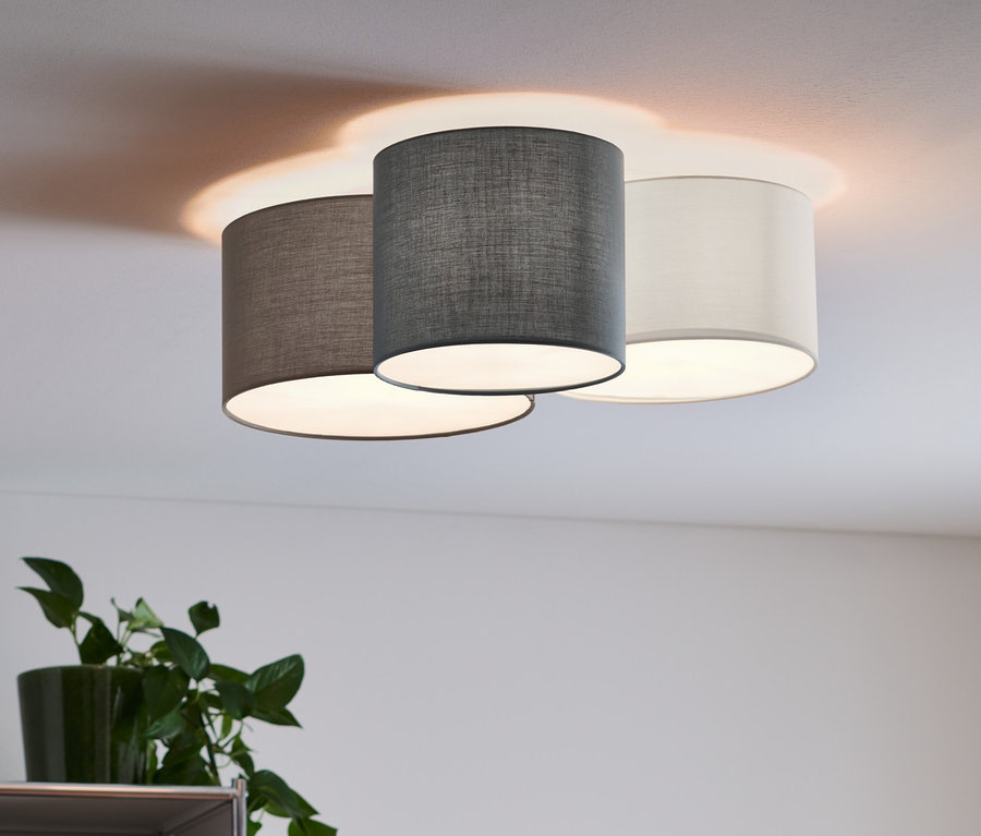 - Stropné svietidlo s kvalitnými textilnými tienidlami v 3 jemných farbách