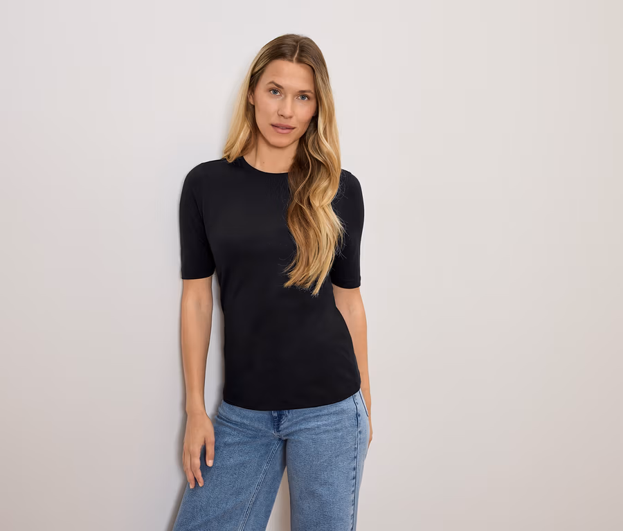 Jednoduché tričko s polodlhým rukávom, čierne