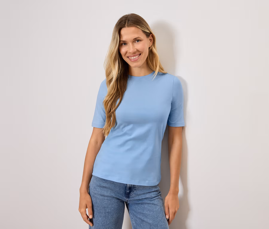 Jednoduché tričko s polodlhým rukávom, svetlomodré