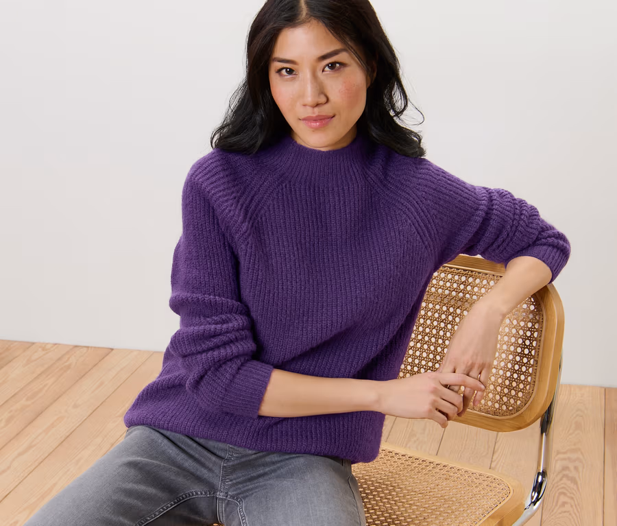 Pulóver z hrubej pleteniny so stojačikom, fialový