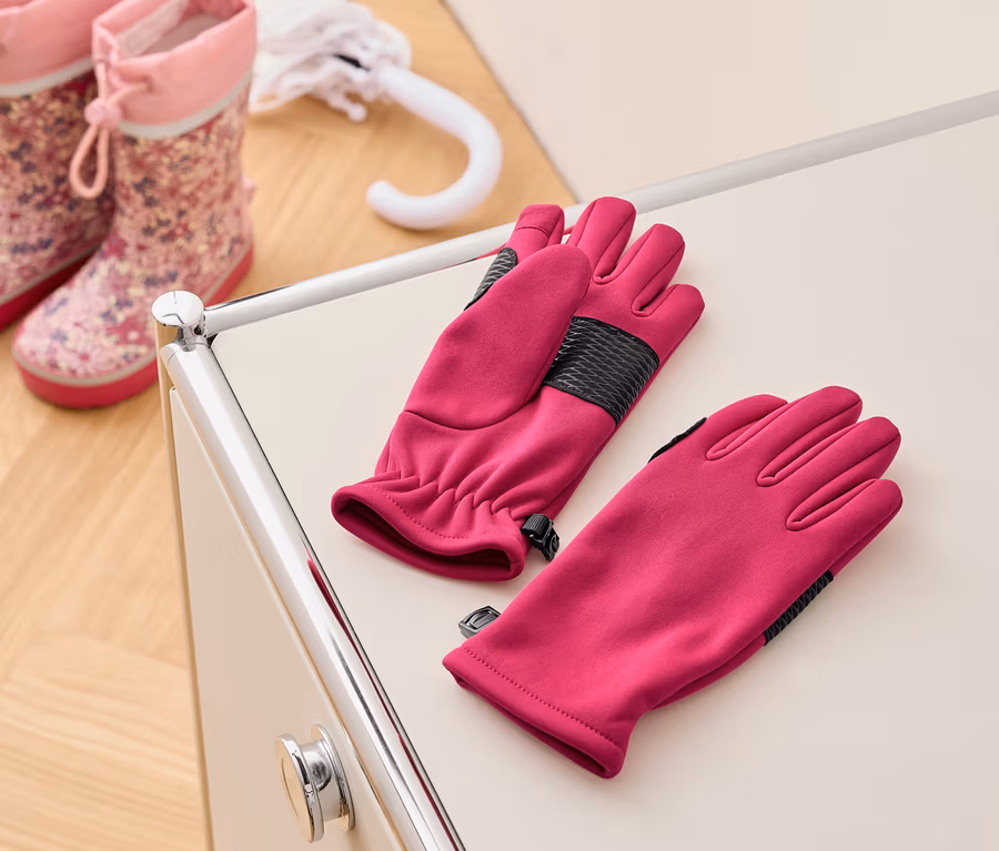 Detské softshellové rukavice, vínové