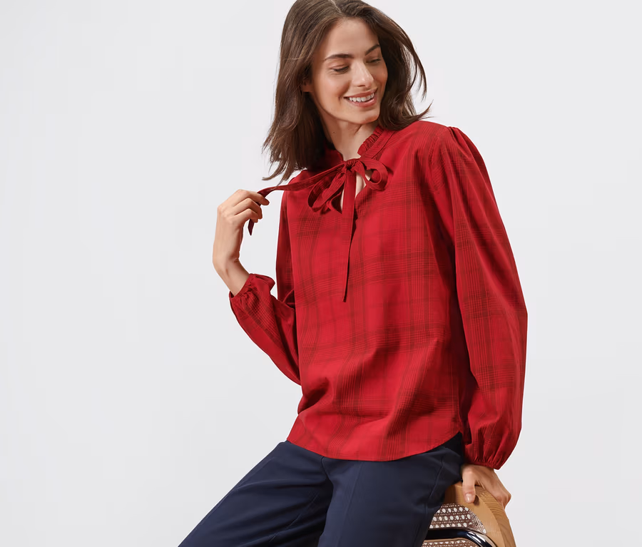 Károvaná blúzka s viazačkou