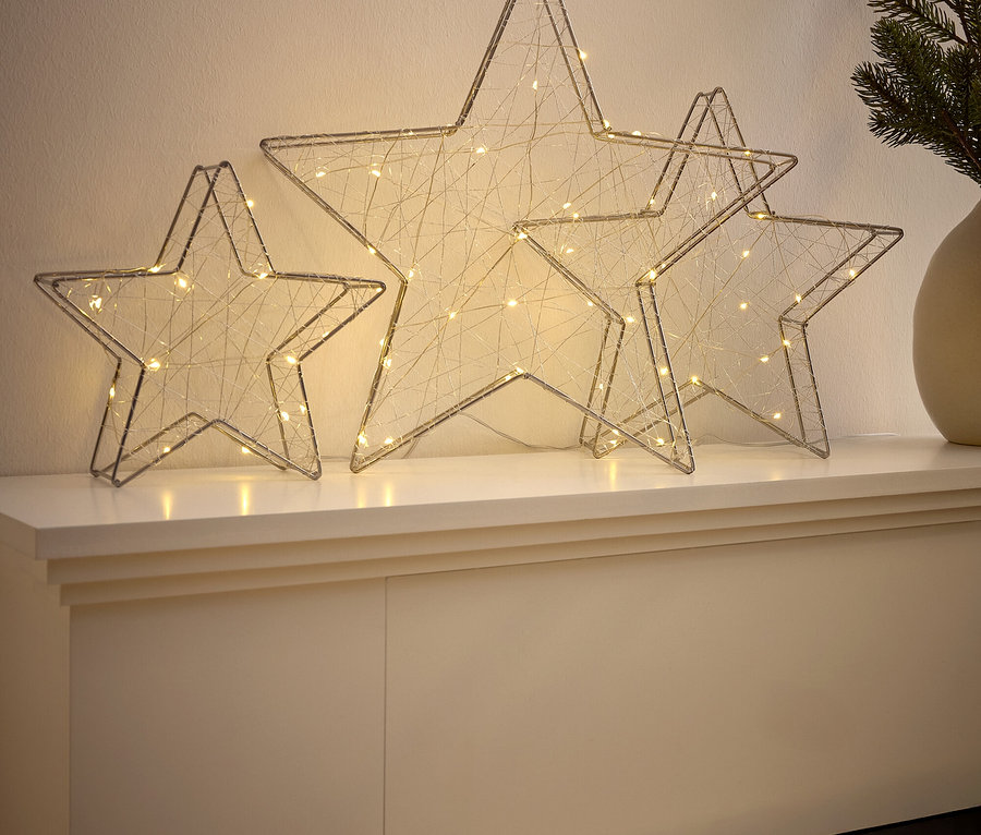 - 3D hviezdy z kovu a ozdobnou reťazou s mikrosvetlami