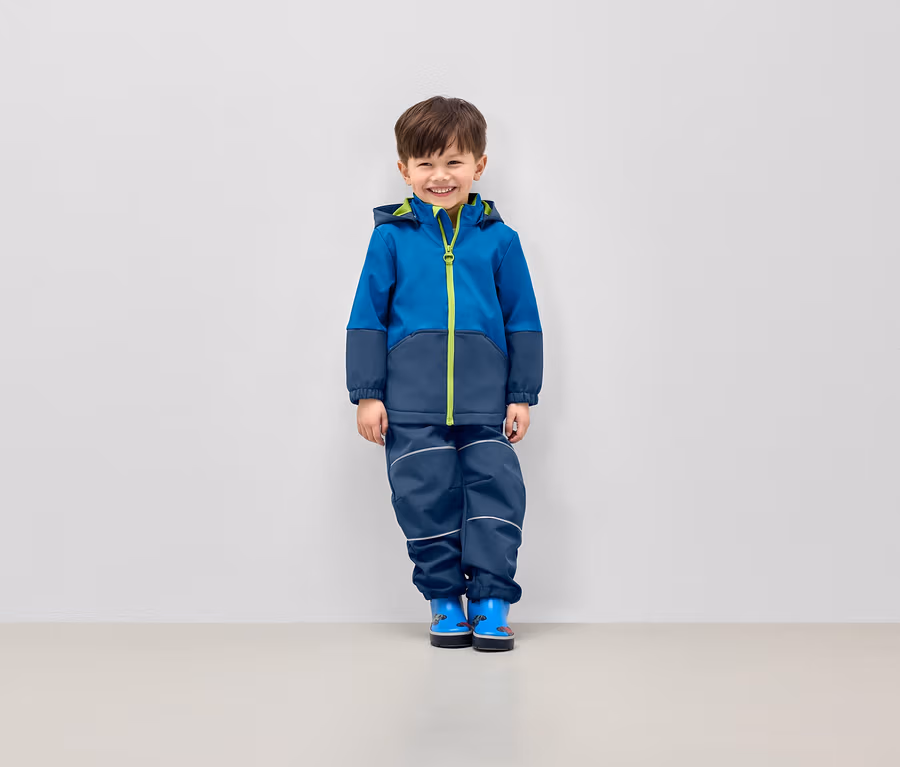 Detská softshellová bunda s meniacimi sa farbami v daždi