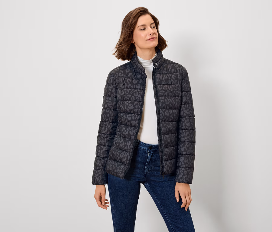 Prešívaná bunda, celoplošná leopardia potlač