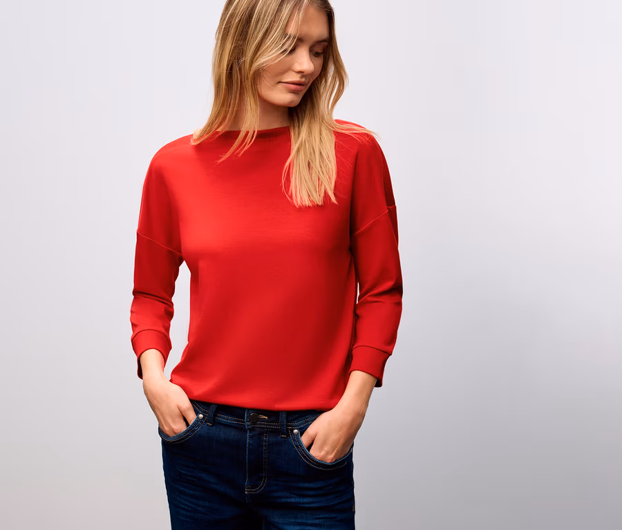 Street One tričko s rebrovanými prvkami, červené
