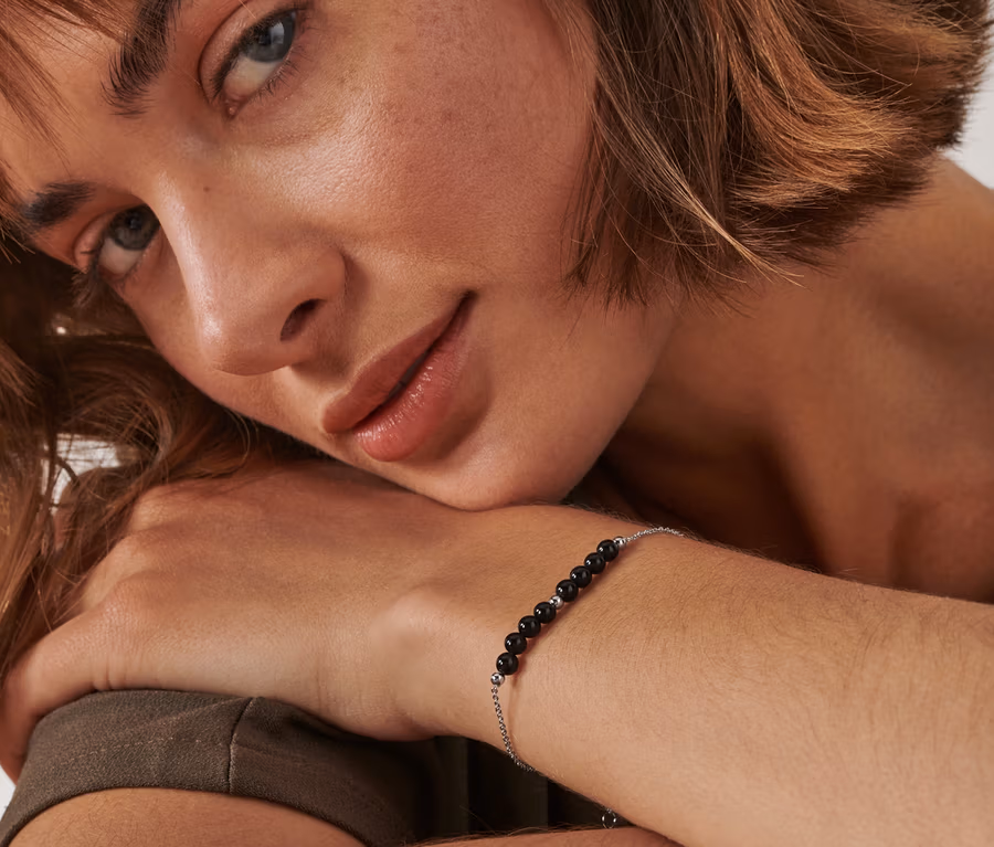 • Náramok s čiernymi obsidiánovými kamienkami na dodanie energie