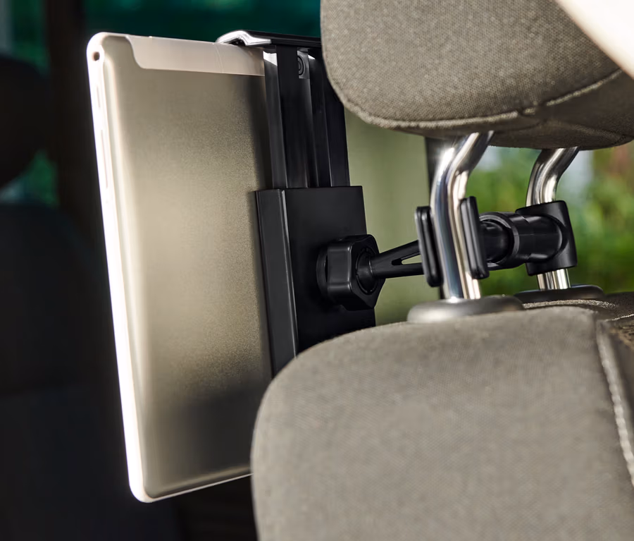 - Možnosť rýchleho upevnenia na hlavovú opierku predného sedadla bez použitia náradia
