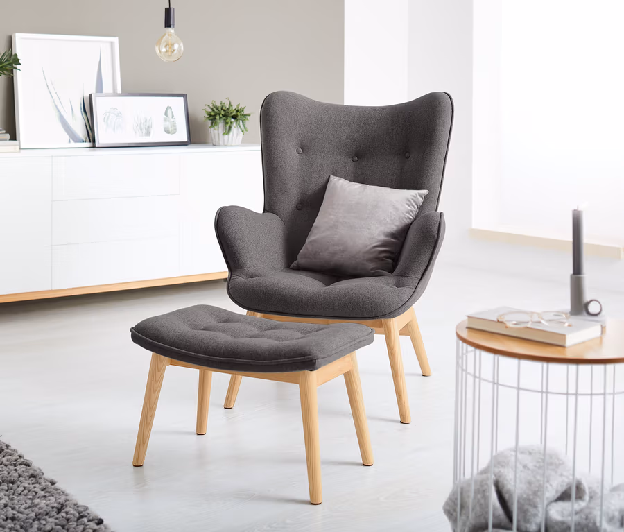 - Kreslo a podnožka s ozdobným prešívaním s gombíkmi