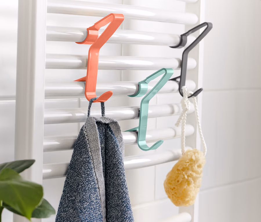 • Jednoduché upevnenie – háčiky sa jednoducho zavesia medzi tyče kúpeľňových radiátorov