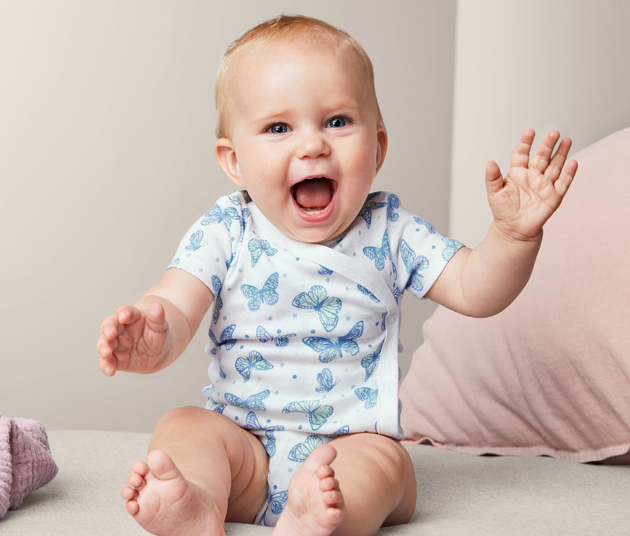 - Veľkosti 74/80 – 98/104 navliekacie body: patentné gombíky v oblasti rozkroku na jednoduché obliekanie a vyzliekanie