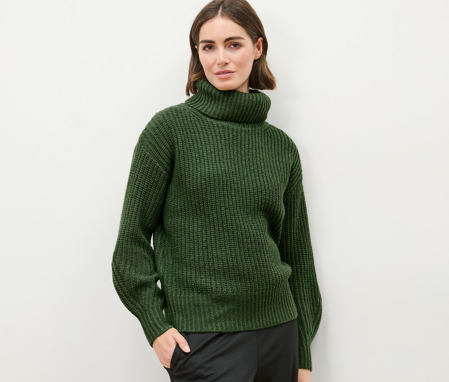 Pulóver z hrubej pleteniny s rolákovým golierom