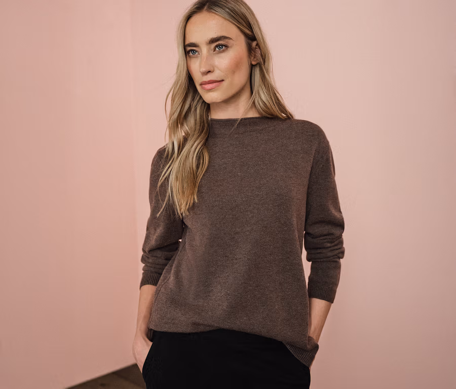 Street One pletený pulóver so zvinutým lemom, hnedý