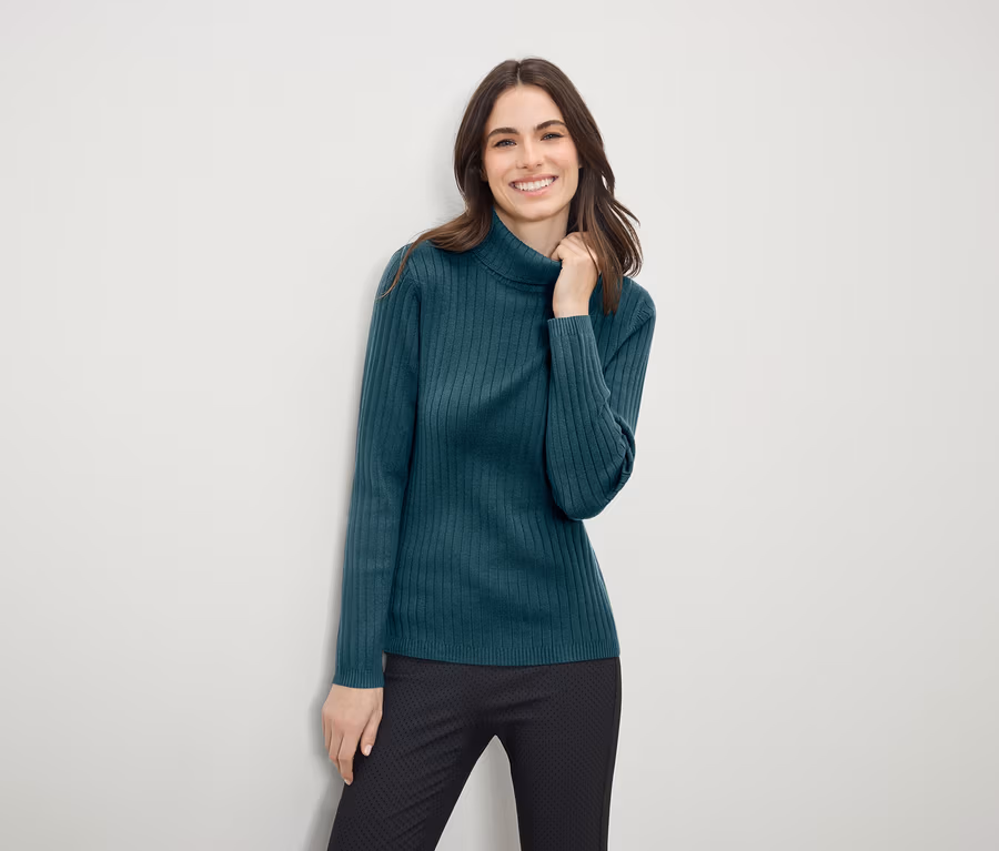 Rebrovaný pulóver s rolákovým golierom, petrolejový