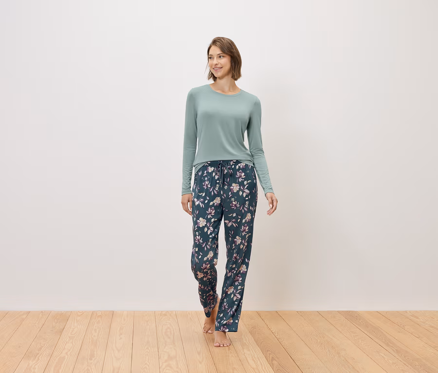 Pyžamo s tkanými nohavicami, petrolejové