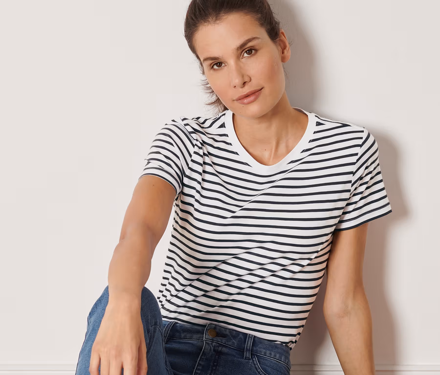 Pásikavé tričko s krátkymi rukávmi, antracitovo-biele