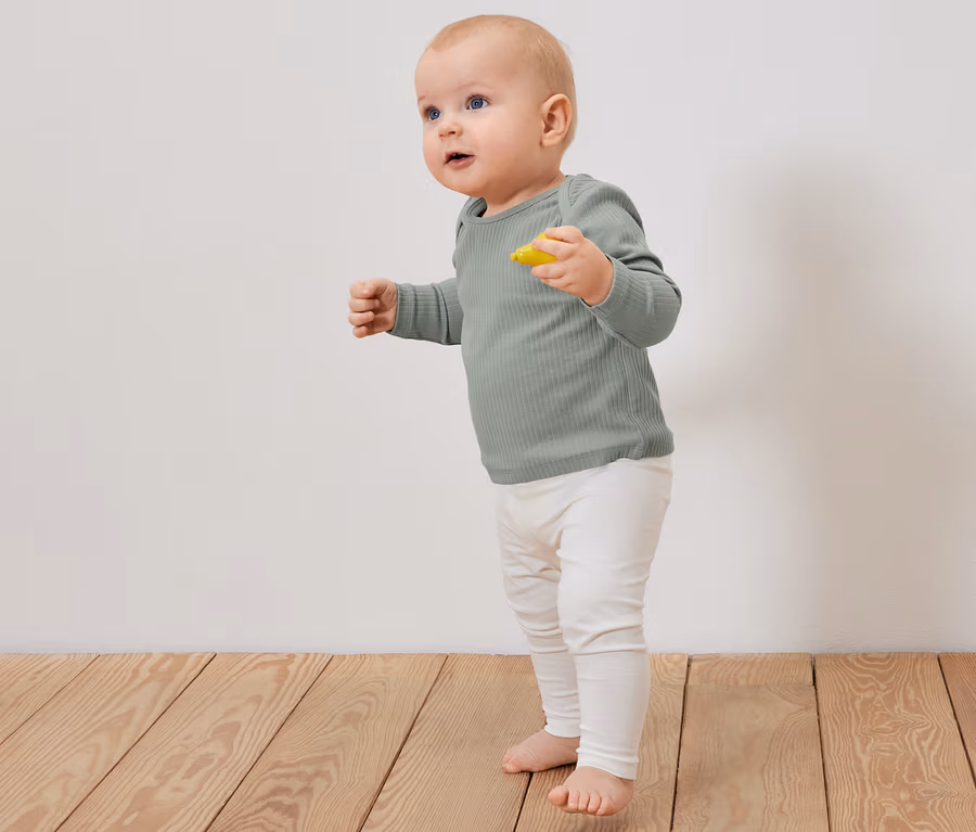 Detské tričká s dlhým rukávom s rebrovanou štruktúrou, 2 ks, svetlozelené a béžové