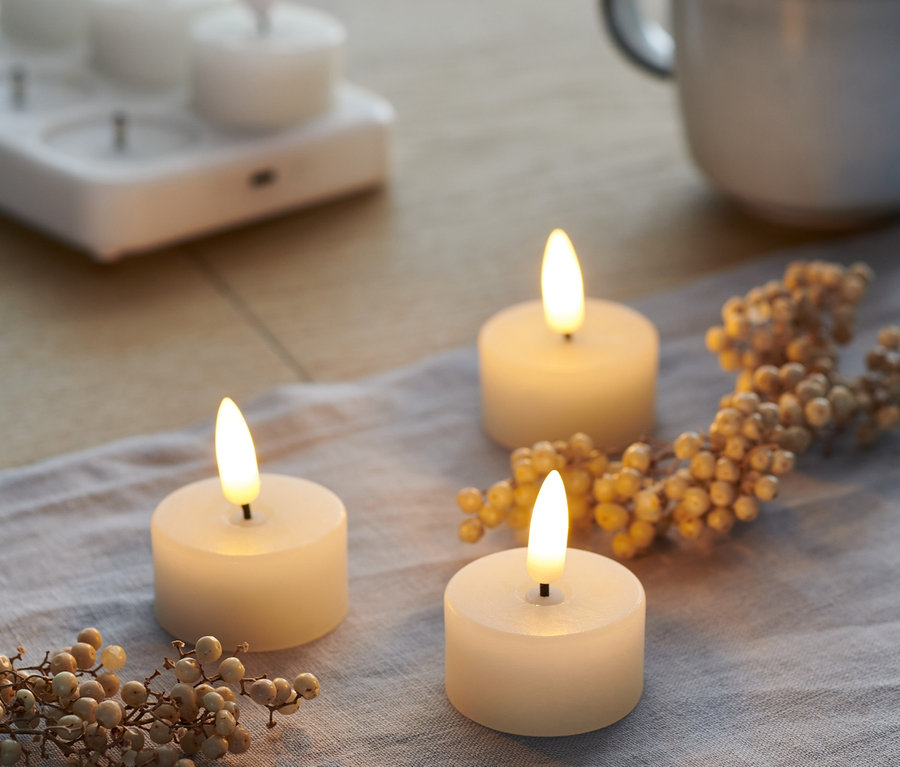 - Pomocou realistického LED plameňa s integrovaným efektom mihotania imitujú žiaru sviečok
