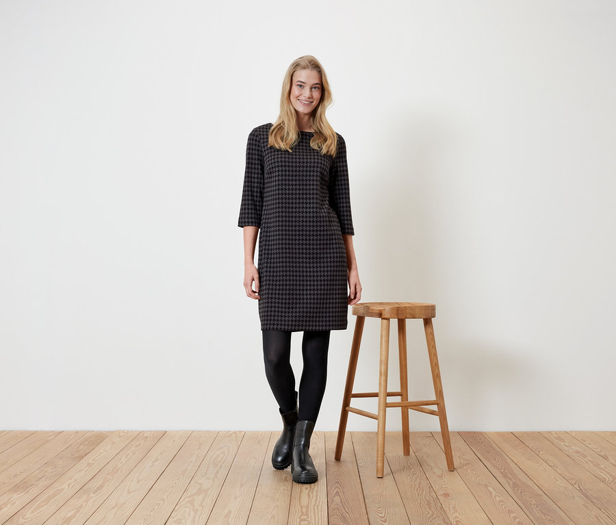 Džersejové šaty so žakárovým vzorom kohútej stopy