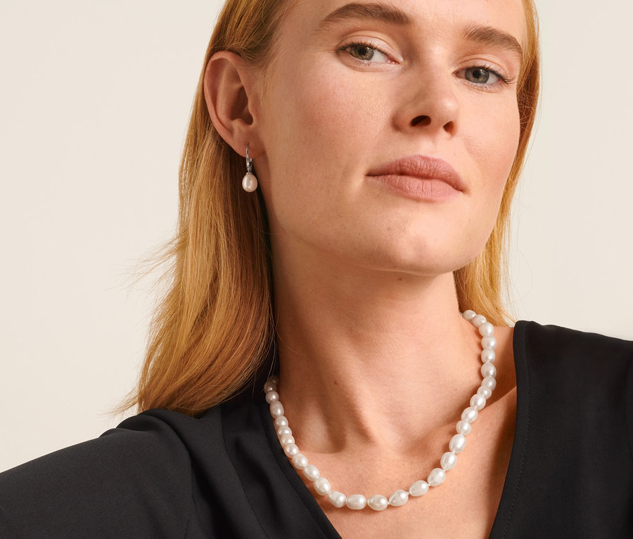 Náhrdelník s barokovými kultivovanými sladkovodnými perlami, striebro s rýdzosťou 925/1000