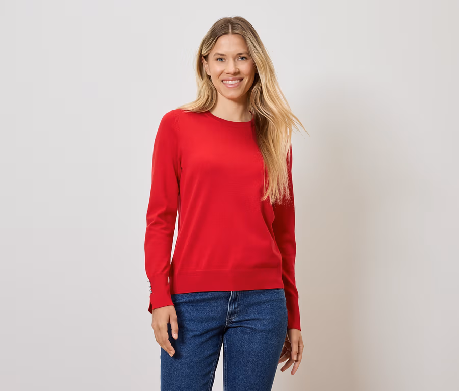 - Elastické rebrované lemy na výstrihu, koncoch rukávov a spodnom okraji