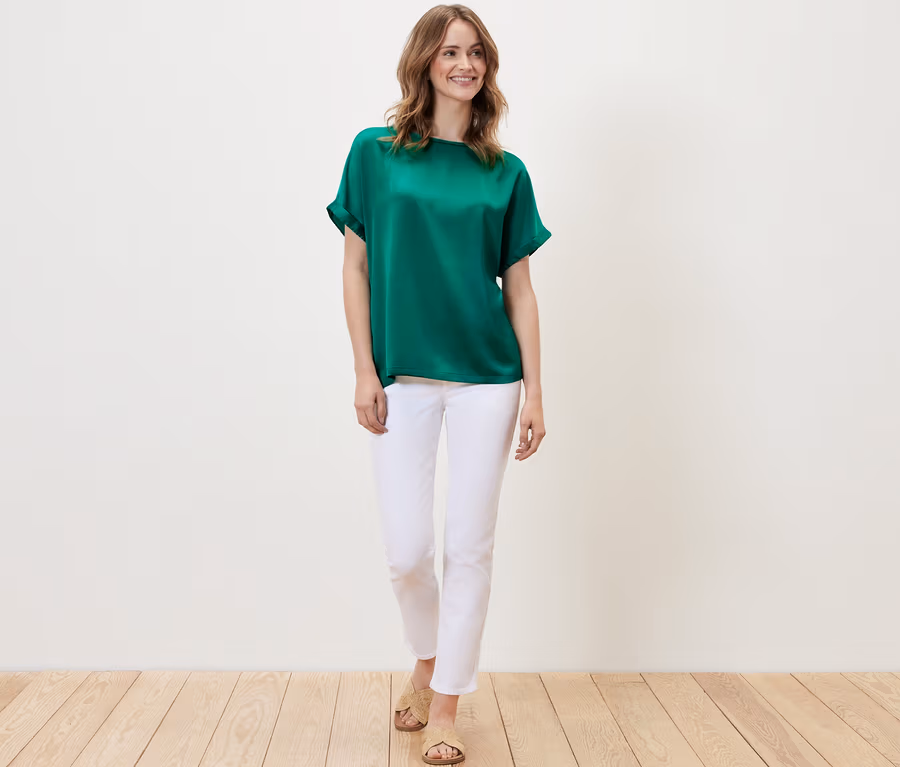 - Predná strana z lesklej saténovej tkaniny ‒ zadná strana z elastického džerseja