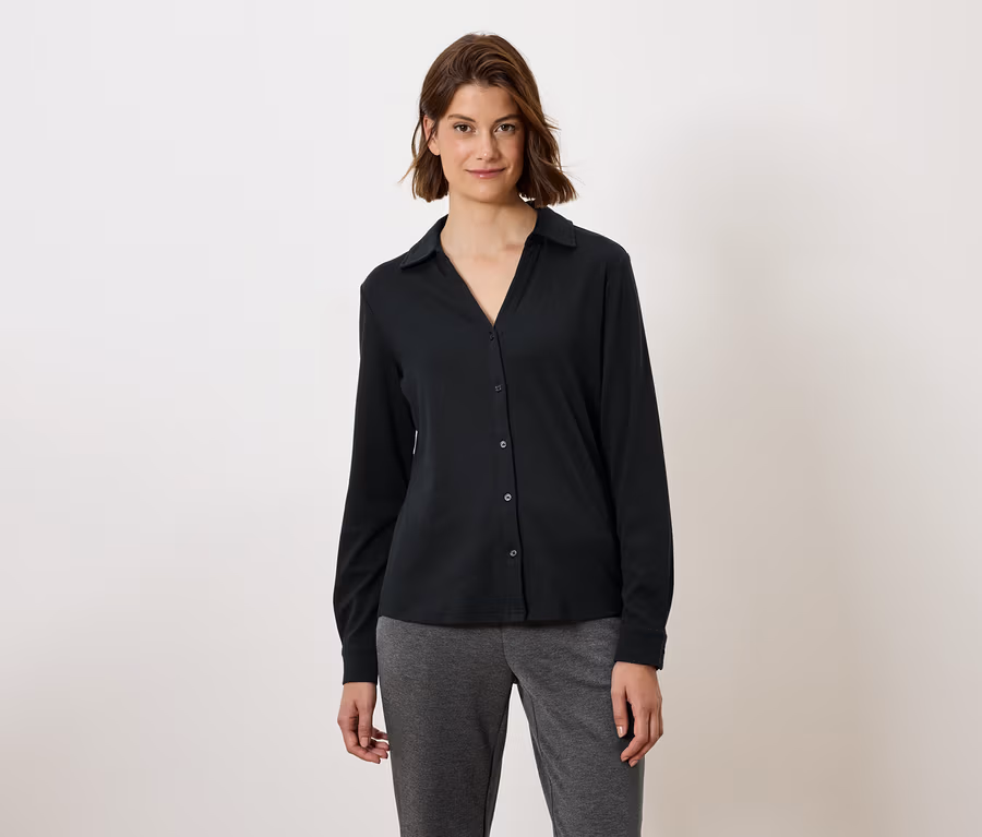 Blúzkové tričko s gombíkovou légou, čierne